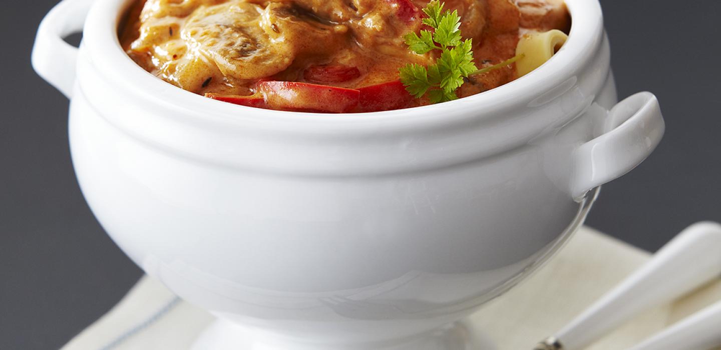 - 5 Sprinkle flour over chicken and vegetables; cook, stirring for 1 minute. Stir in stock and tomato paste; cook, stirring often, until thickened enough to coat back of spoon, about 5 minutes. Remove from heat and cool slightly then stir in sour cream.